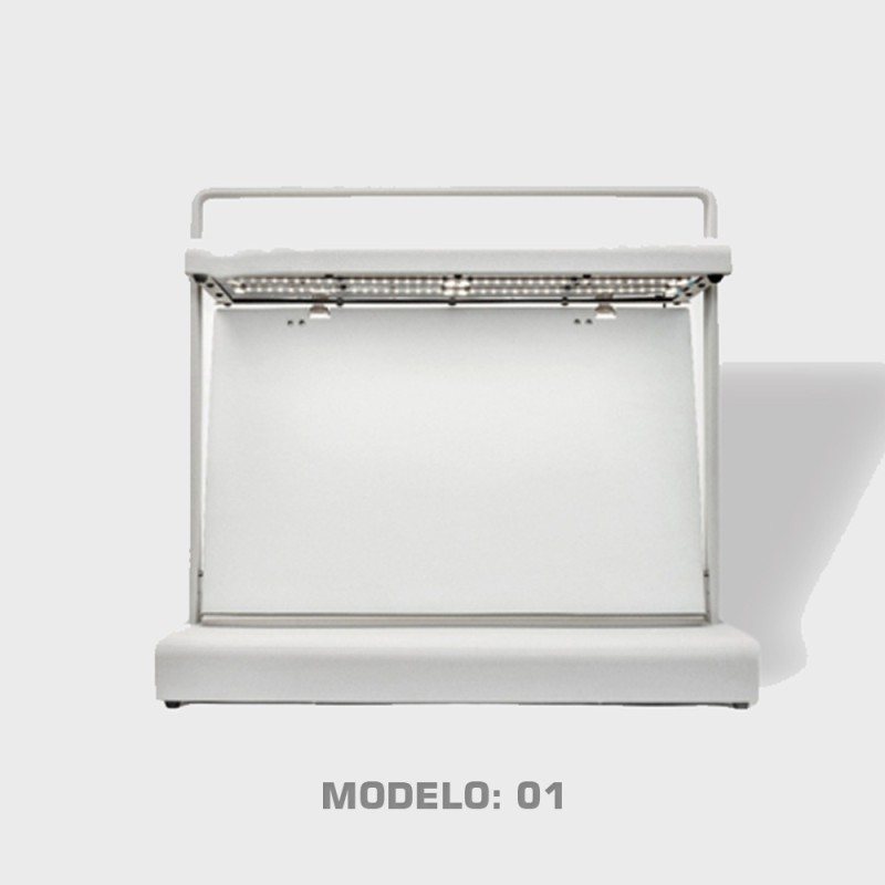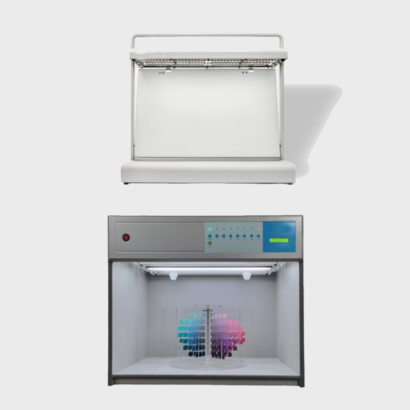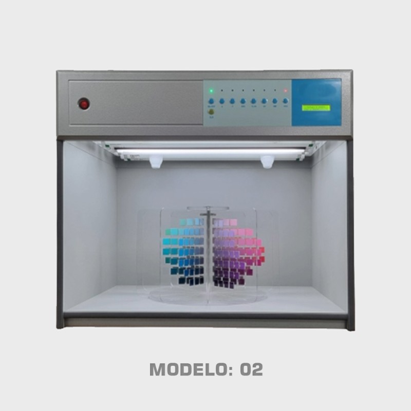 Cabine de avaliação de cores, adequado para todas as indústrias e aplicações onde há necessidade de manter a consistência e a qualidade da corMODELO 01: Fonte Luminosa - LED D50MODELO : Fonte Luminosa - D65, TI84, UV, F, S, CWF e U30.
